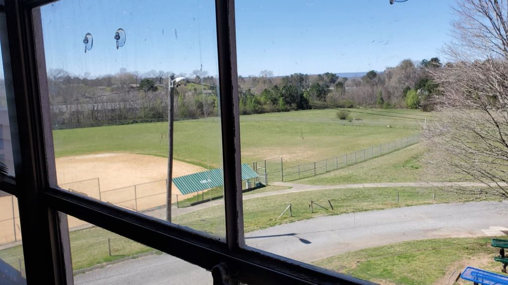 SOUVENIRS: On Labor Day evening 1971, with Monday Night Baseball the backing soundtrack, I sat in my dad’s lap in the house numbered 1432 & cried. Cried because the next day, I would enter 4th grade at a new school with a 6579 address. I left Elbert S. Long / Elbert S. Long Junior High School, 6579 East Brainerd Road as a graduate in June 1977. I didn’t cry then because I was a 14 year old with the world to conquer. Yesterday, with some old friends, I entered & exited those seafoam green flat & bull nose tiled hallways, hallways too talkative girls stood in & too talkative boys in Mr. Spencer’s class stood with noses against the hallway tiles, dismissed from class with the phrase “the hall called”, fairly certain it would be the final time. I didn’t enter with an eye for yesterday, a “we did it better” stance like old men leaning on a fence & seeing only the past on a fall Friday night, or intend to receive or stamp a letter from the past. I went to visit a gift shop. A place where invested time, scholarship, & friendship were shelved as momentos, souvenirs given by others on the way to their obituary, souvenirs collected by me on the way to mine. A tour that I ran into spots where I avoided the raindrops that puddled into “woulda’s, coulda’s, & shoulda’s”, & places where I danced in the rain with the intention of getting wet & I stomped in the puddles of “glad I did”. The auditorium on one end of the main floor, its wooden theater seats long gone. The place I entered & sat nervously at stage right waiting for the first 4th grade day. The place I entered in later years, proudly wearing my game day jersey or a wool letterman sweater when it was way too hot in September & way too cold in January, taking my seat at stage left. The place where I learned in orchestra that scales were the same foundation in music as footwork was to sports & I became attracted to jazz. The library where Mrs. Hoover encouraged my love of books, the words, the feel, the sound of a cracking spine & turning pages. The office where Mrs. Lawrence served Mr. Blanchard & Mr. Dryman as secretary. Next door the 4×8 room that served as a bookstore for needed erasers, pencils, notebooks, & P.E. uniforms. Up the steps to the top floor, & my 4th grade classroom. Where my rite of passage was being the new guy, ignoring my name being purposely mispronounced, ignoring the fact I was the last guy picked for football at recess, hanging in until on a spot where a soccer pitch now sits, I intercepted 2 passes during one recess & the next day wasn’t the last, mispronounced pick that day or any other. Across the hall to 5th grade where 2 boys picked up a shotgun rider in each other for the rest of our time at Elbert Long School & beyond*. I went back across the hall from where I came, shotgun rider in tow, for 6th grade. My friend & I joined our athletic lives here, youth league football & baseball in 6th grade & through open projecting windows that still protect from the weather, we heard cheerleaders clapping hands & bopping feet & the thump of a big bass drum as a pep rally roared for his brother & the Trojans. For the next 3 years as Trojans, the claps, the bopping, the drum beat was for us. Every class, every team, except 8th grade homeroom when the “M”s left the N-Zs & joined the A-Ls & 9th grade 1st period when he took art because he could draw & I didn’t because I couldn’t draw a blank. The room where Mrs. Farrow drove & demanded from an overhead projector, allowed a day of paper football before Christmas break, & wheeled in a big black & white TV so we could watch Aaron swat #714 before she dropped down the 3 floor central staircase & joined us for 7th & 8th grade math. At the landing at the central stairs, by the double swinging gym doors, at the spot where every K-9 student walked every day to recess or to lunch, sat Mrs. Pitts English class. It’s her fault for me clogging so many timelines, she told me I could write. The last time I saw her in 1988, she told me I could write, ’cause educators are gonna educate. On the left, back toward the library, sits what used to be Room 207, the room where football pregame took place, nervous blue shirted boys tapping orange helmets or fumbling with a chinstrap. Turning back on the main hallway, toward the big picture window which, like the hallway has grown smaller as the years have grown longer, Mr. Haskins Science room & Mrs. Hearn’s Civics class & in between the Typing room, where I spent 1st period in 9th grade with Miss Winston at 41 words per minute & nabbed my first byline courtesy of the “Trojan Trackdown”. Across the hall, Coach Moser’s art room. The room I visited frequently for one who wasn’t an artist. Down the steps to the bottom floor, passing the picture window & looking over the baseball field & beyond, to the patch of green that used to be the gridiron. At the bottom of the steps, on the left, Mrs. Farrow’s math room, now without the obligatory overhead projector, a room that in later years proved, as I looked over blueprints or tried to balance an ailing checkbook, that one does use math as a grownup. On the right, Mrs. Welch’s Home Ec room, where for 9 weeks I learned to sew & to cook. Past the lockers, to the foot of the main stair by a library that used to be the woodshop sits the coaches office. I spent a lot of time there to not be a coach. It was the room from where I got my first big boy phone call from Coach Moser, a call informing me that our classmate & teammate Gary had drowned. He was with us during football season in the form of a black cross on the back left of our orange helmets. Under the steps, school janitor Mr. Chapman’s office. His green uniform & red mower gone but not the memory of well cut ball fields & slick gym floors nor the double duty magic sawdust, the sweeping compound that could suck up a poorly digested lunch or dry a rain soaked pitchers mound with equal effect. A quick tur